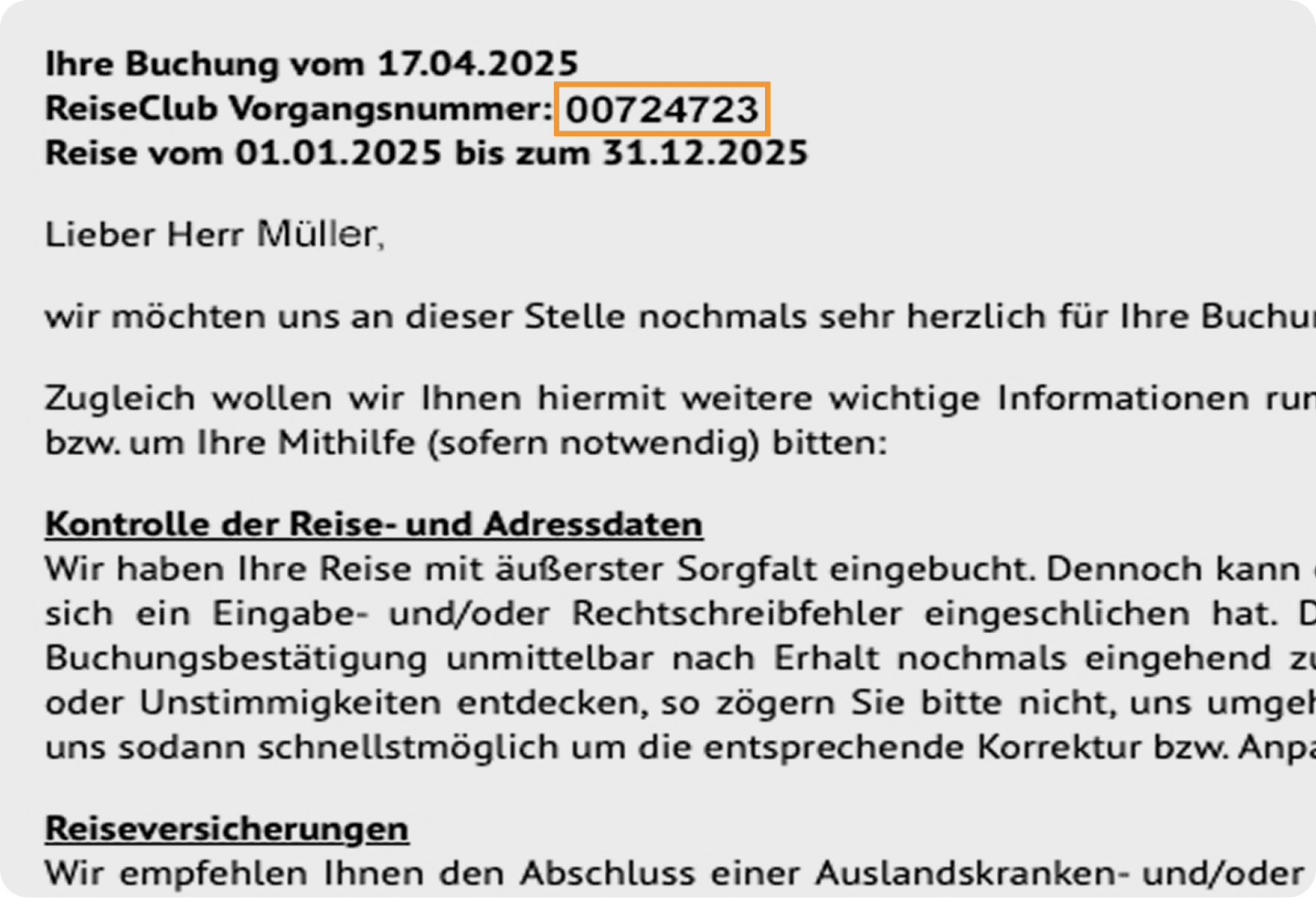 Ihre ReiseClub-Vorgangsnummer finden Sie in der E-Mail unserer Buchungsbestätigung.Absender: info@reiseclub.deBetreff: Vielen Dank für Ihre Buchung bei uns im ReiseClub!